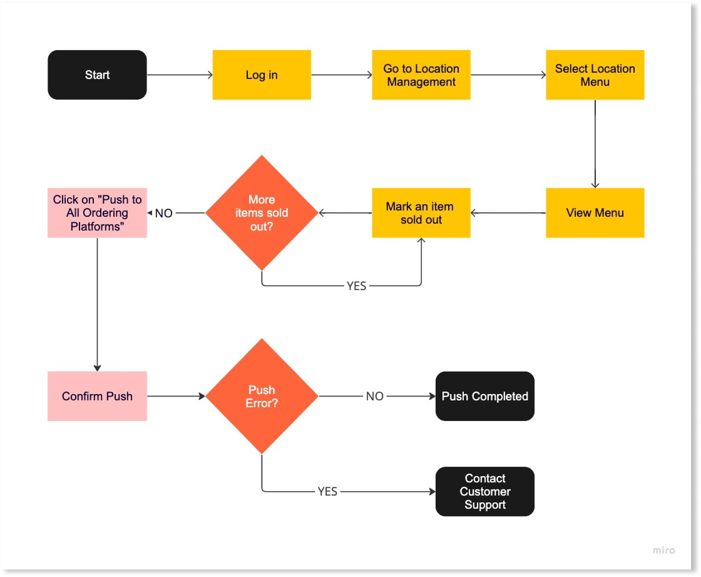 I did some brainstorming sessions, walking through the experience of a restaurant operator, and figuring out what would make their job more efficient when using the Menu Management UI. I thought about how they will log into the portal, navigate through the user interface, and what features they will use to manage the menu.