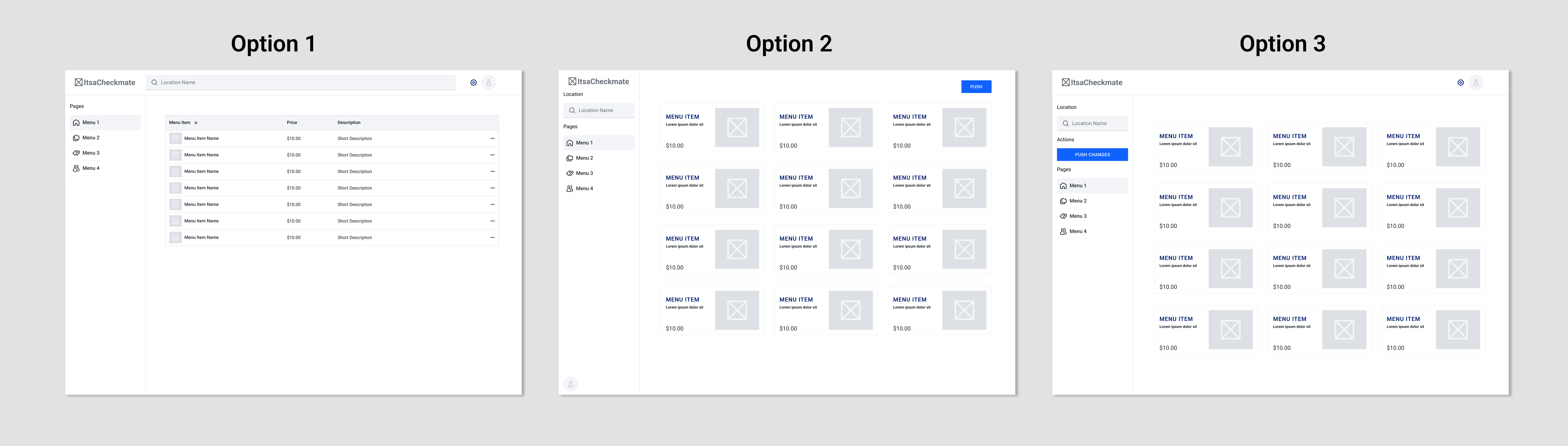 Although ItsaCheckmate core product solved one end of the integration for orders, the next problem is to solve for menus. Restaurant operators were still having pain points trying to update menus on different ordering platforms. Oftentimes, restaurant operators have to log into different ordering platforms to update an item price as an example, and it becomes cumbersome and hard to keep track. Menu Management UI was the solution to one stop shop for managing all the ordering platform menus. Restaurant operators can make any changes to their menu, and push the changes to all their integrated ordering platforms.