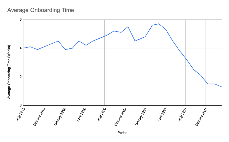 As customer demand surged—particularly at the onset of the COVID-19 pandemic starting in June 2020—the existing onboarding process struggled to scale. What was once manageable quickly became a bottleneck, with onboarding timelines stretching to an average of 4–6 weeks.